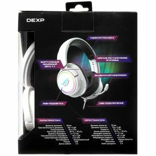Купил, одно ухо не работало, сразу пошел поменял на такие же, в этот раз проверил, звук показался отстоем полным, думаю всё равно куплю, чтоб ни себе ни продавцам не морочить голову, всё-таки не самые дорогие, наверно за такую цену это норм... Пришел домой воткнул usb, и понял, что это ИМБА. Громкие, басят сильно с использованием эквалайзера. Если без него то звук — шляпа, но стоит чуть отрегулировать эквалайзер всё в корни меняется, становится вообще другой продукт. Так что кто хочет нормальный звук можете сразу уже искать прогу с эквалайзером, у меня бесплатный Equalizer APO 1.3. Микрафон записывает без шумов, доставать его не обязательно, слышно итак. При покупке проверяйте, чтоб оба уха работали. А так нормальные наушники, басят прям не в себя и высокие частоты есть. Подсветку бы одноцветную им, но это мой вкус. За 1700р. покупал. DEXPу спасибо.