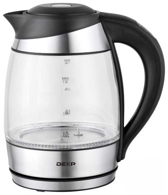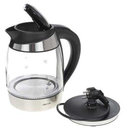 В целом впечатление от чайника хорошее. Редкое сочетание достоинств в одном: не токсичный металлический корпус, нагрев до определённой выбранной температуры и поддержание её уровня в 30 мин., окно уровня воды, слабая, но всё-таки внутренняя подсветка, качественные контакты, корпус прочно сбит, герметичное ситечко в носике, кипит!, а не просто закипает (для лучшего обеззараживанию воды), тихий в работе. Ручка - главный минус: удобно для кисти браться как раз в том месте где, как нарочно, расположен блок управления с кнопками. Приходится не удобно браться ниже по ручке или захватывать блок с кнопками - рискуя сильным сдавливанием его ненароком повредить. Окно уровня воды хоть и есть, но темное, через него уровень воды плохо различим. Подсветка - просто световая индикация включения и обозначения режимов работы чайника: меняет цвет (4) смотря на какую температуру настроили. От подсветки толк только в темноте - тогда чуть виднее уровень. Выключение после закипания через 4,5 мин. если вода была комнатной Т. Нет механической клавиши включения: если электронный блок управления выйдет из строя, то в целом исправный чайник включить будет не возможно. По набору и качеству реализации функций и оснащения своих денег стоит. Осознание, что не переплатил дорого при покупке успокаивает. Пользоваться можно, но не вполне удобно. Остаётся чувство неудовлетворения. Эргономика ручки просто мрак. Ну и, может ли Дексп быть долговечным ?...