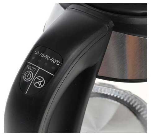 Электронное управление нагревом по 5 уровням температуры с разным цветом подсветки. Окно уровня воды. Нейлоновое ситечко в носике. Крышка открывается на 90гр. Горловина большого диаметра. Контактная группа strix.