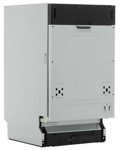 - Откидная крышка отсека открывается только на 90°, упираясь в высокую посуду в нижней корзине.