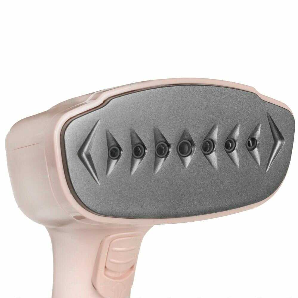 Основной недостаток – значительный вес (около 1.1 кг с водой), вызывающий усталость руки уже после 2-3 вещей. Форм-фактор признан неудобным: при вертикальном отпаривании пар часто обжигает кисть между большим и указательным пальцами. Бачок объёмом 300 мл имеет спорную конструкцию: высокий бортик вокруг сливного отверстия препятствует полному удалению воды, а узкая горловина усложняет заливку без специальной воронки. Шнур длиной 1.8 м многим пользователям кажется недостаточным. Кнопка блокировки подачи пара срабатывает слишком легко, что мешает точечному контролю. При этом керамическая подошва (вопреки маркировке на коробке, где указан алюминий) предотвращает пригорание ткани и позволяет использовать прибор как утюг при горизонтальном позиционировании.