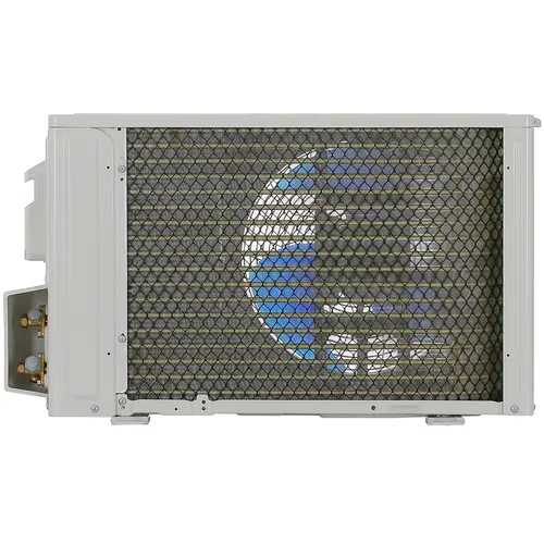 Односкоростной привод внешнего вентилятора (без DC-управления) увеличивает энергопотребление в турбо-режиме до 1.2 кВт. Толщина теплообменника 13 мм против 15-18 мм у премиальных моделей снижает КПД теплообмена. Диаметр медных трубок 6-7 мм (против стандартных 9.5 мм) ограничивает хладагентный контур. Реальная производительность по холоду – 2.8-3.1 кВт вместо заявленных 3.5 кВт. Система совместима с фреоном R32, но заправочные клапаны нестандартного размера требуют адаптеров для сервиса.