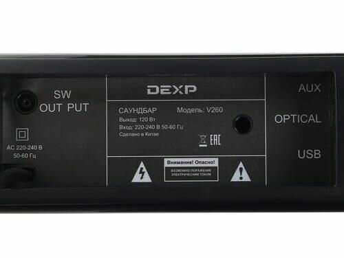 В сравнении с моделью Samsung HW-A430, которую я брал два года назад за 17 тысяч, а цена на сегодняшний день составляет 24 тысячи рублей, разница в ценовой категории цена качество – это просто небо и земля. По звучанию DEXP V260 в два раза мощней чем Samsung, а по качеству звука практически одинаковы. Мощность звука соответствует заявленной мощности 100 ватт.