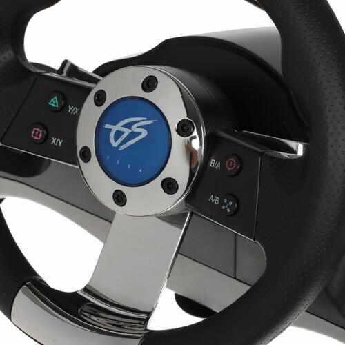 Будьте реалистом - за такую стоимость рабочим окажется только руль. И то, от части. Переключатель виброотдачи руля должен активироваться при 3-х секундном нажатии. Но, увы. Руль на нажатие клавиши "mode" не реагирует, и, это не только моя проблема - многие с этим столкнулись, исходя из отзывов. (Забавно что в самой калибровке руля виброотдача работает, а в играх нет.)