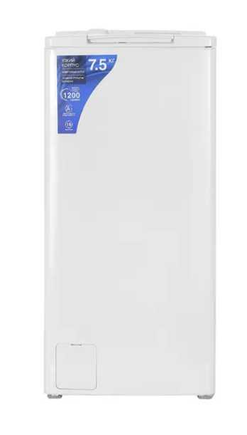Нужна была вертикальная машинка, выбирал не слишком дорогую и не слишком дешевую. По параметрам была привлекательная эта модель: загрузка 7 кг, 1200 оборотов, много программ стирки, плавное открытие створок барабана.