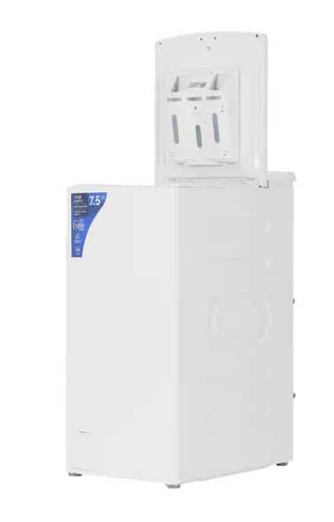 - Вертикальная загрузка упрощает размещение белья без необходимости наклоняться.