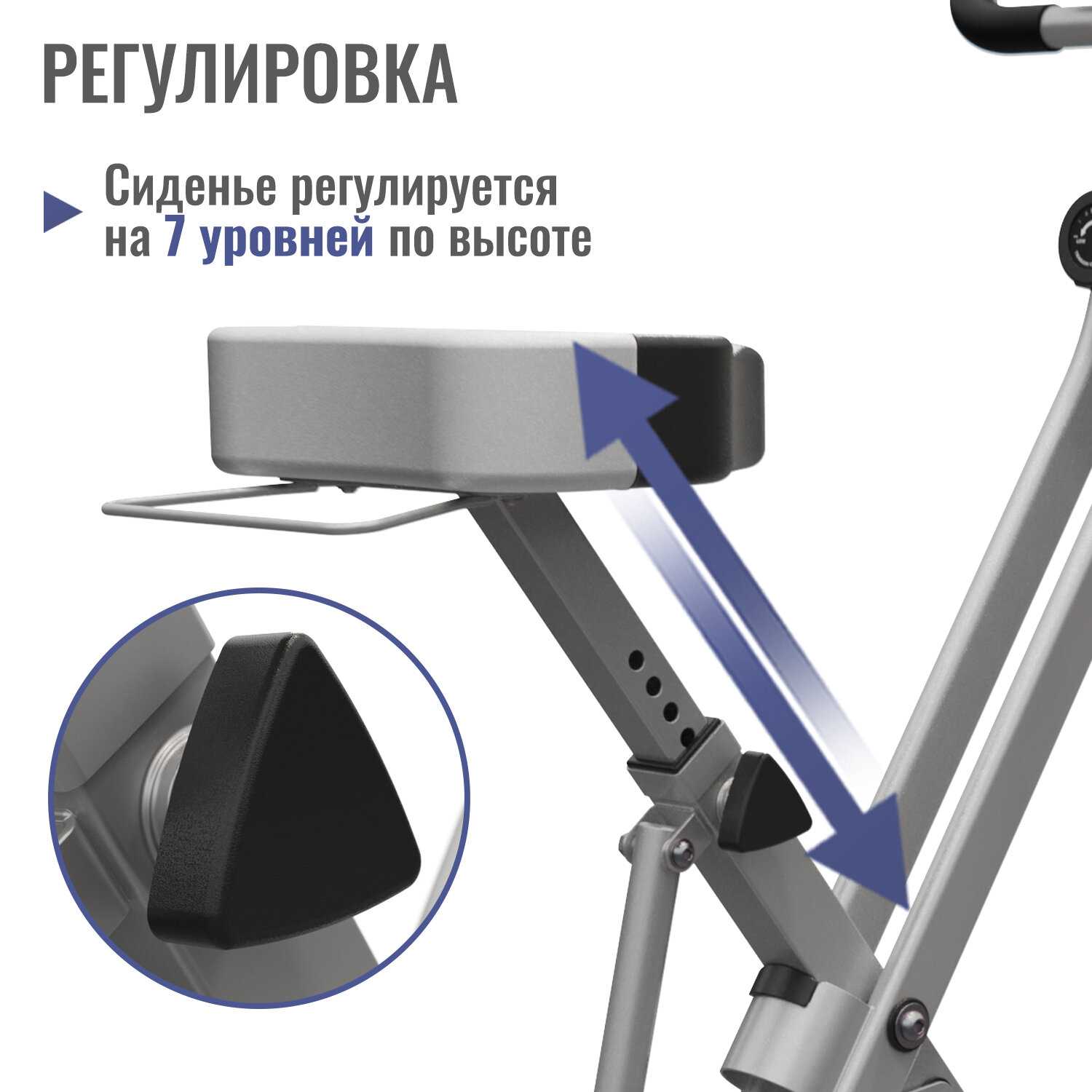 - + легкая сборка, удобное сиденье регулируется по высоте, можно выбрать нагрузку. есть колесики на задней стойке для передвижения.