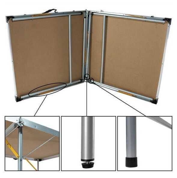 - + Брали на дачу, нормальный стол для любителей.Не тяжелый, на улице под дождем не оставляли.