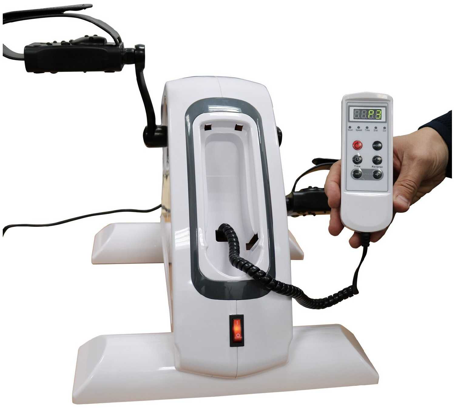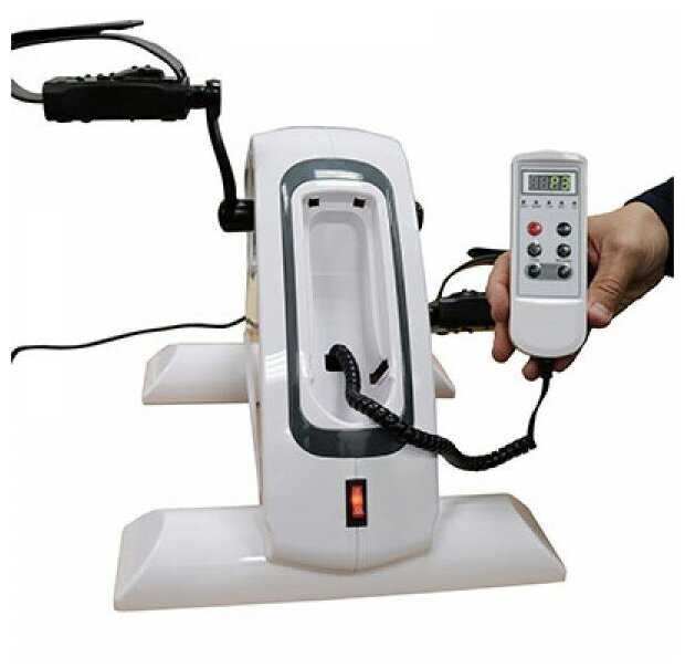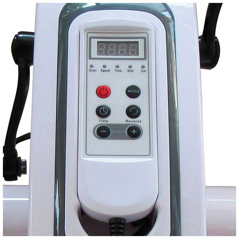 дистанционное управление с помощью пульта, встроенный реверс позволяет крутить педали в обоих направлениях, ремешки на педалях