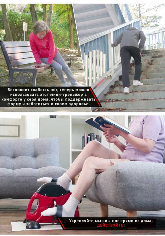 - + Компактный, легко задвинуть в укромное место от посторонних глаз) кручу педали, просматривая фильмы и каталоги интернетмагазинов)) полезное с приятным.. болело колено( сидячая работа) , сейчас незаметно для себя 30 минут в движении ежедневно..Колено перестало ныть..