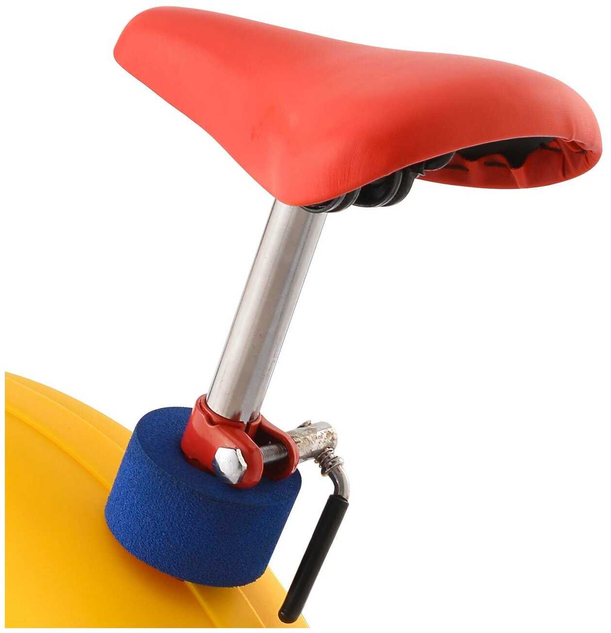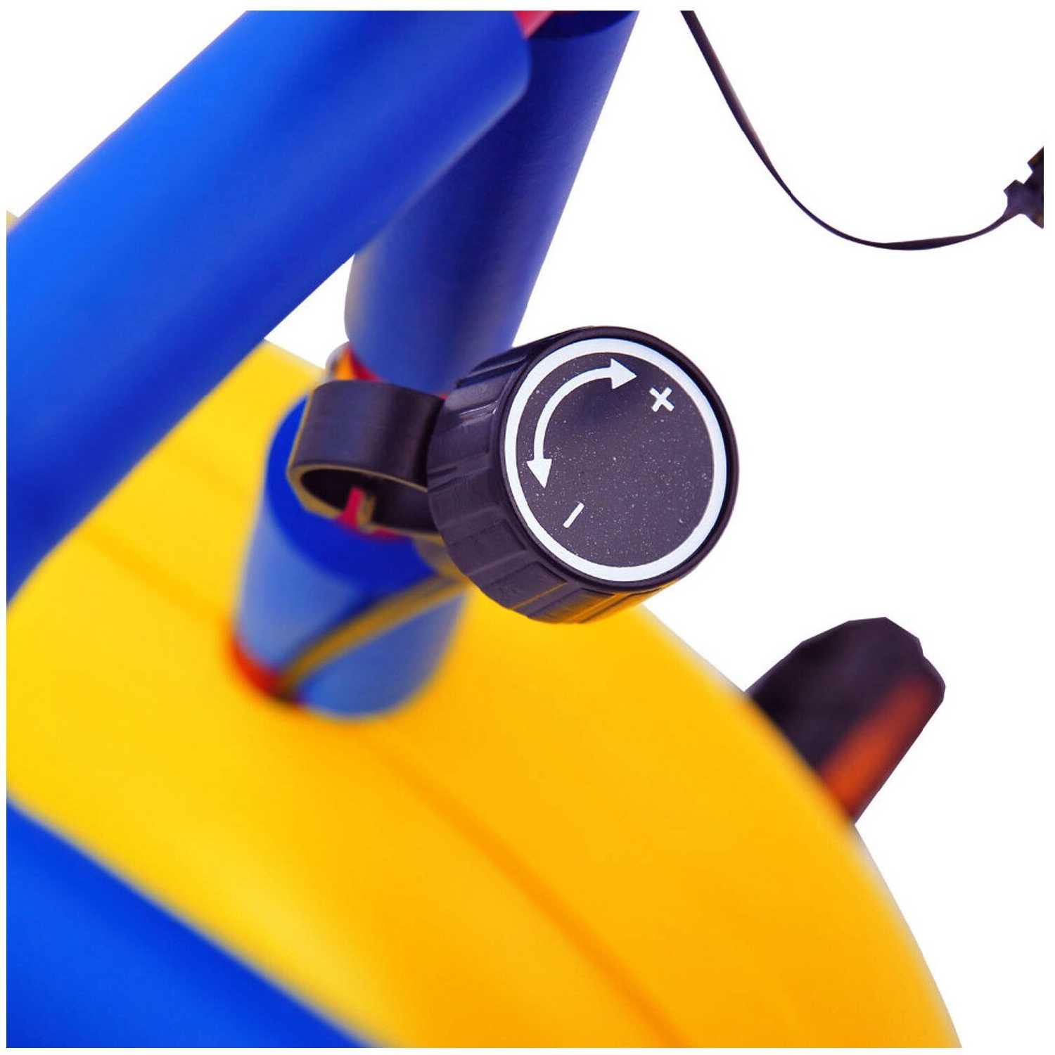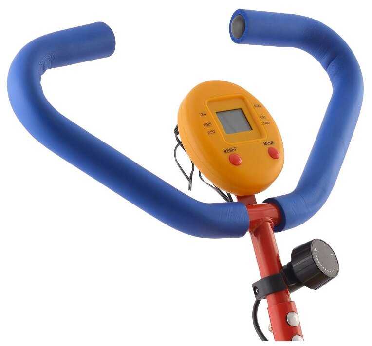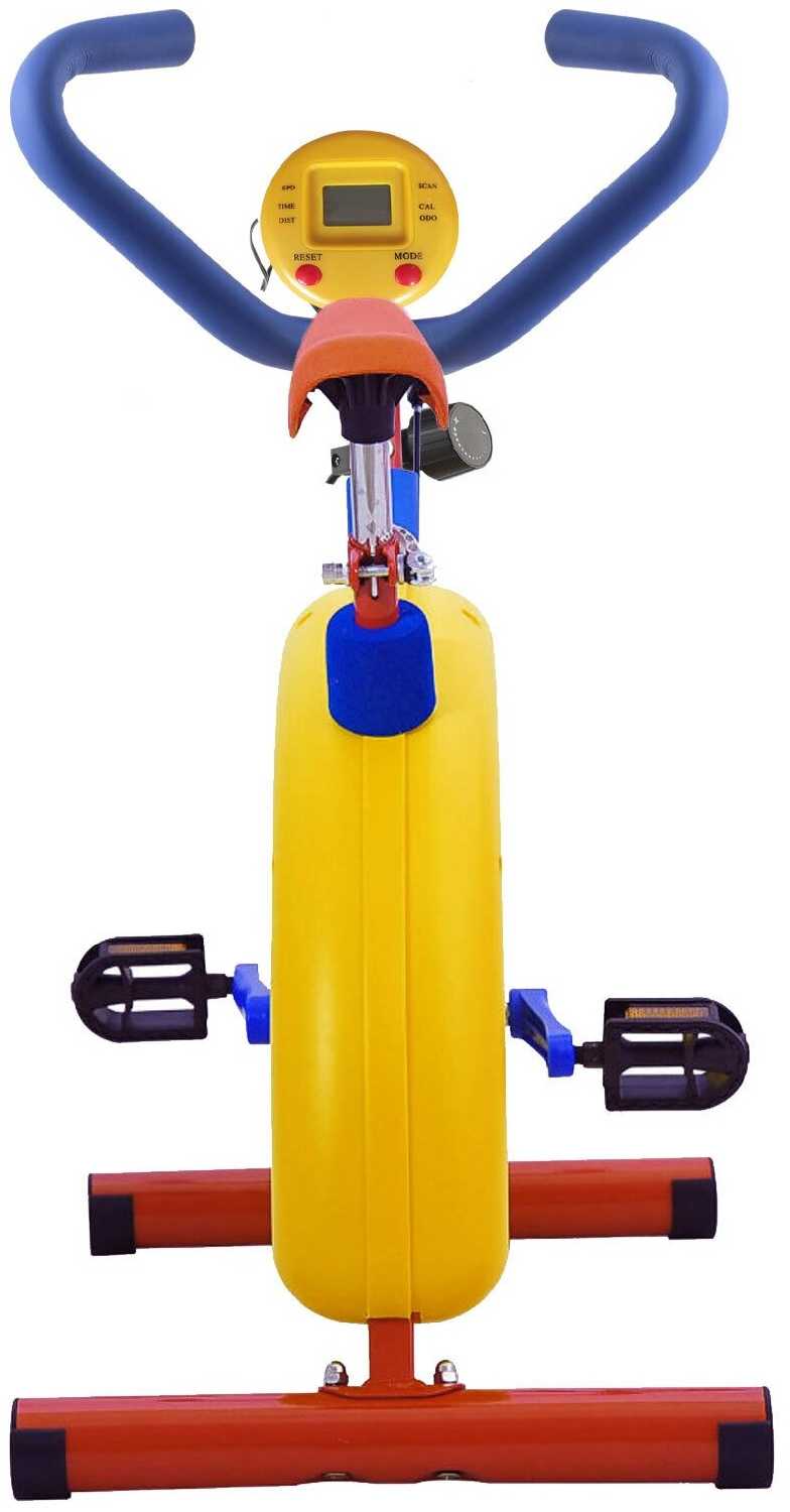 автономная работа, регулировка сидения по высоте, система нагружения: механическая, дисплей: ЖК черно-белый, показания консоли: скан время расстояние калории, питание консоли: 2 AA батарейки, для детей 3-7 лет, защитное покрытие на элементах