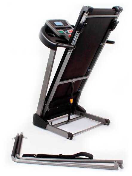 Не совсем бесшумная, но на фоне остальных звуков от приборов ее почти не слышно, я бегу громче. Модель складывается для хранения. Мне было это важно, так как живу я в однокомнатной квартире, и когда прриходят гости, нужно освободить пространство для застолья. У модели простоя и понятная панель управления, на котрой есть разные кнопки, с помощью которых можно регулировать режимы работы. На цифровом экране отображаются показатели6 пульс, расстояние, скорость и время.