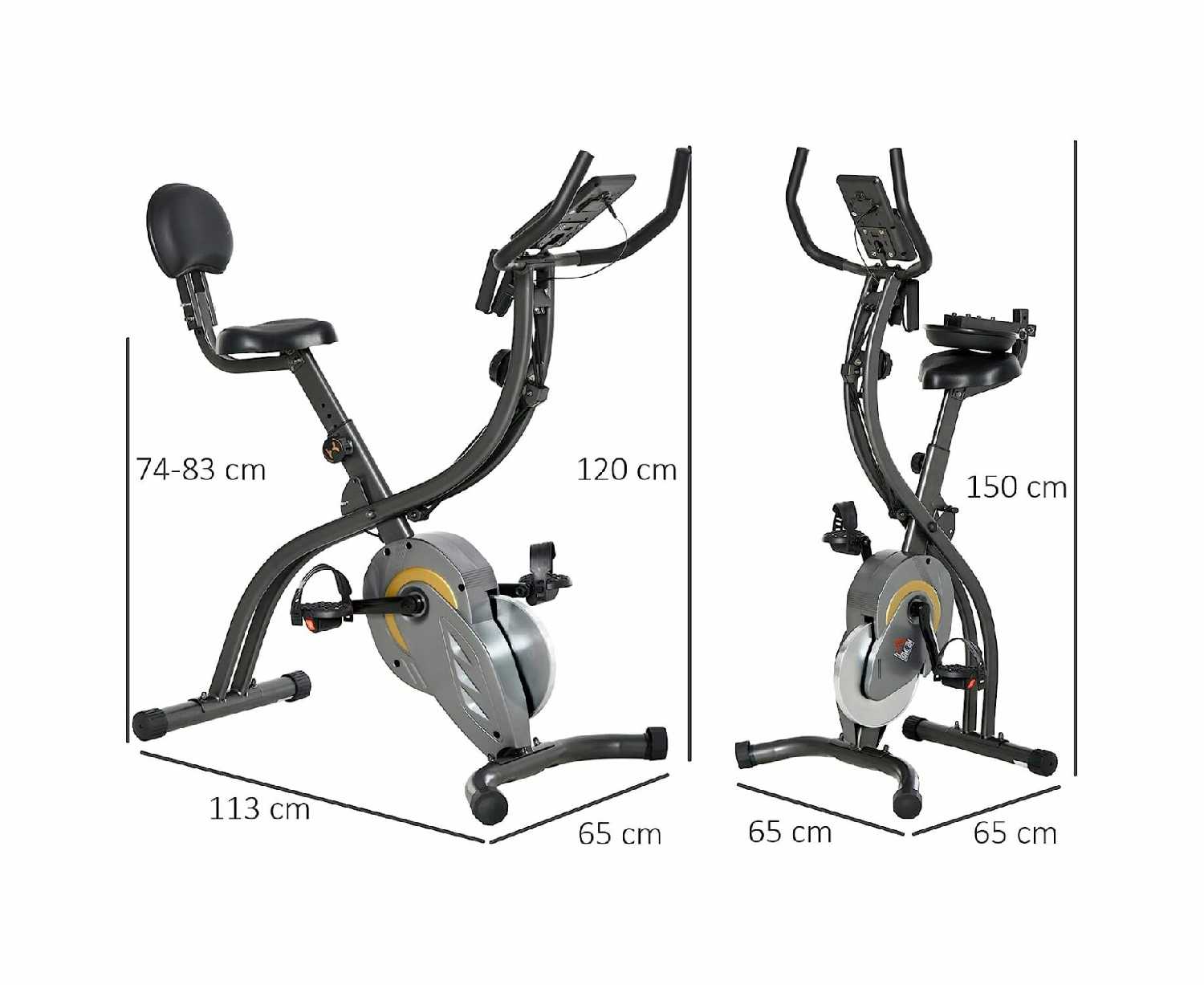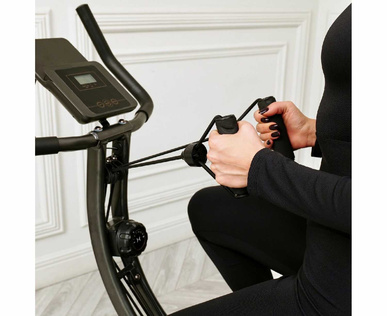 Как и заявлено, помимо велотренажëра, есть диск, приспособление для того, чтобы качать руки. Ещё специальные поручни, чтобы отжиматься. Всё работает, пульс показывает, скорость, кажется, километраж. В сложенном состоянии очень компактный, в маленькой квартире занимает мало места.