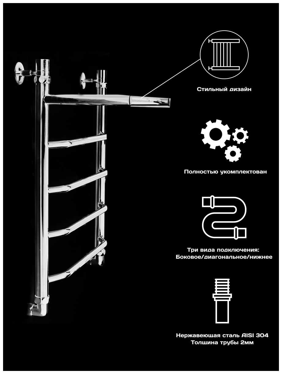 Отзывы о Полотенцесушитель водяной Di Kron 600 мм 500 мм форма лесенка трапеция с полкой