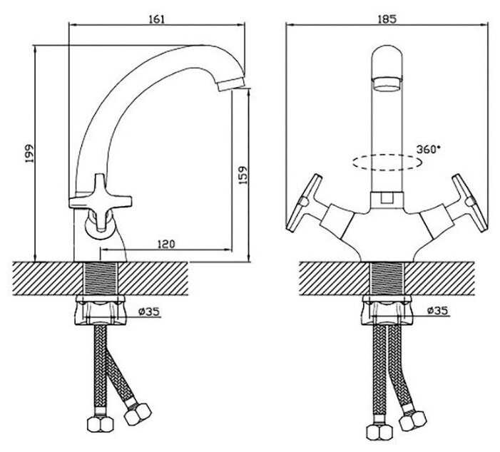 Характеристи Diadonna D81-740351L с высоким изливом, керамические кран-буксы, сатин, крепление гайка