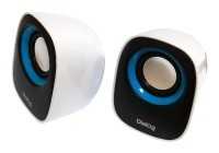Маленькие,хорошие, красивые колонки.Прекрасно справляются со своей задачей, посмотреть фильм, поговорить по скайпу мощности вполне хватает.Громкость даже на половину не прибавлена, звук чистый громкий.