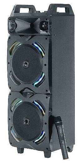 Неплохой аппарат, звучание хорошее, очень мобильная несмотря на свои габариты благодаря колесикам. Жаль что в комплекте только 1 микрофон