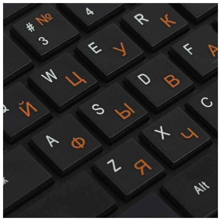 Русские и английские символы имеют различную цветовую маркировку — обычно оранжевую для кириллицы и белую для латиницы, что обеспечивает хорошую контрастность на светлом или темном фоне клавиш. Размер шрифта достаточно крупный для комфортного восприятия при нормальном освещении, хотя в полной темноте требуется активация подсветки. Качество нанесения символов у некоторых пользователей вызывает нарекания из-за постепенного стирания часто используемых букв через несколько месяцев активной эксплуатации. -
