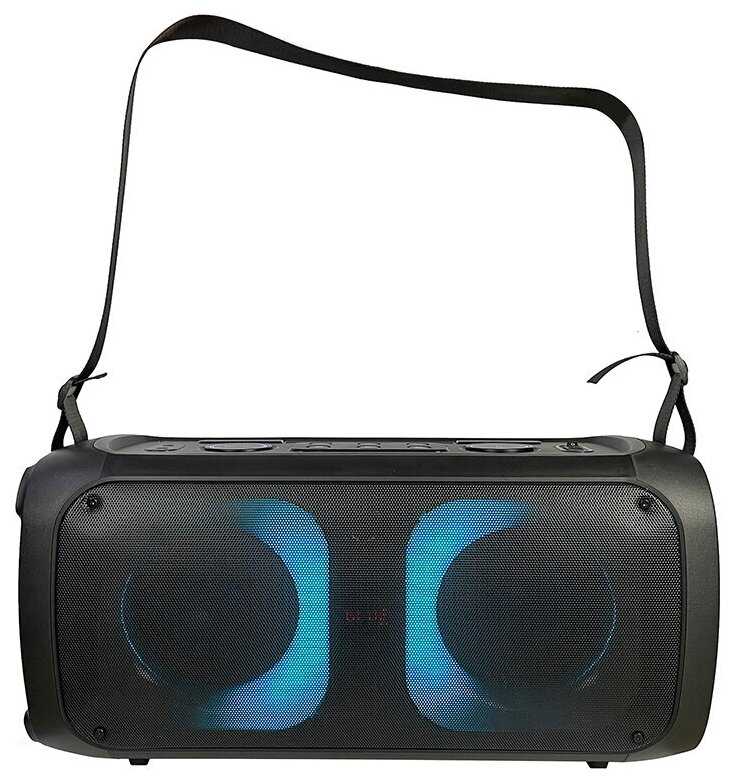 - + Звук чистый громкий. Качество сборки. Отличный бас. Подсветка в такт музыки, есть несколько режимов. Беспроводной микрофон в комплекте. Так же в комплекте батарейки для пульта и микрофона.