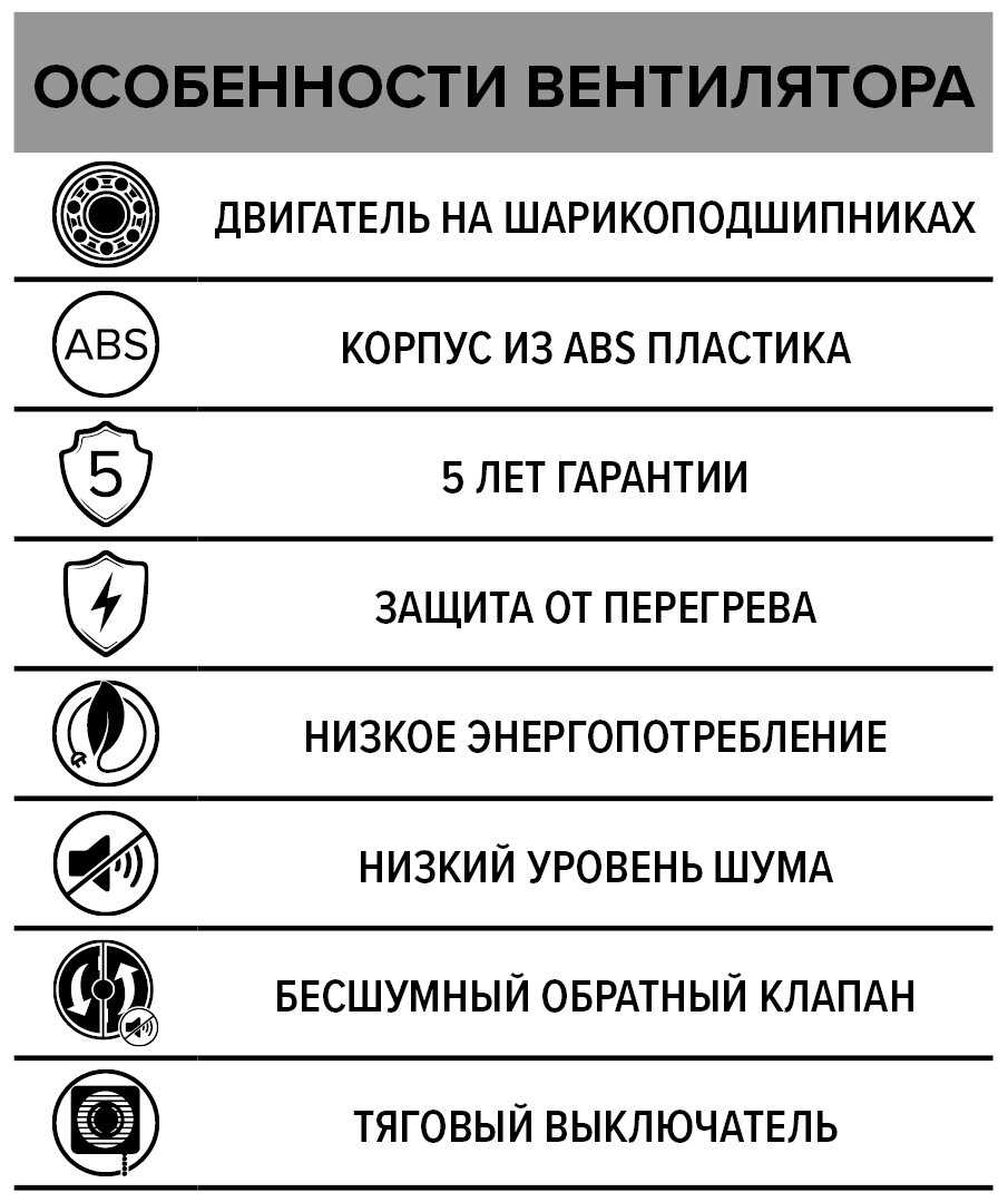 - + Работает тише некоторых аналогов. Пластик качественный. Крепёж в комплекте есть.