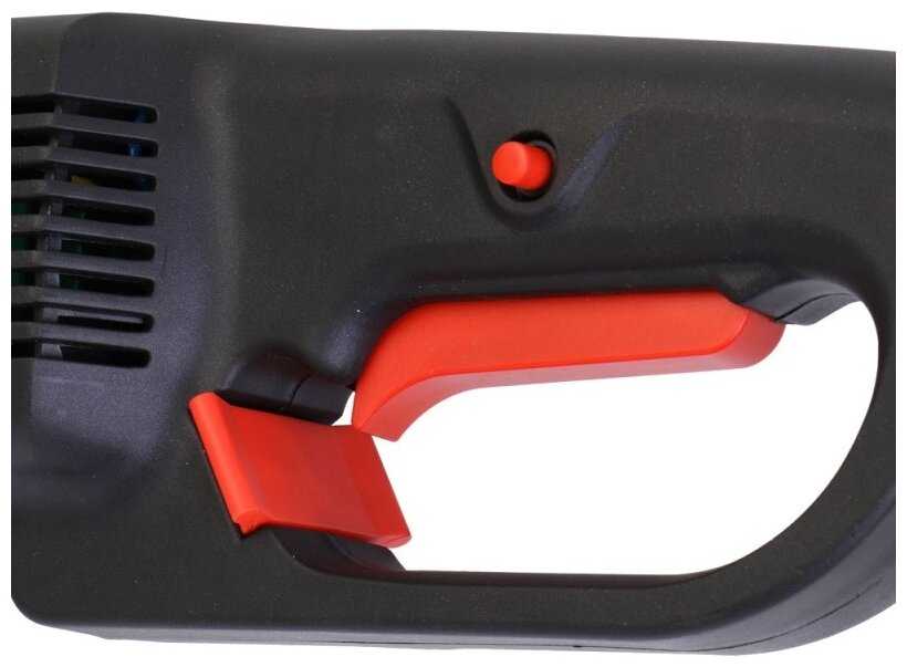 - + Мощная, поворотная ручка, не греется, цена, качество пластика корпуса, но внутрь не залезал, плавный пуск, не особо шумная, приятный зелёный цвет, безопасный 2кнопочный механизм включения