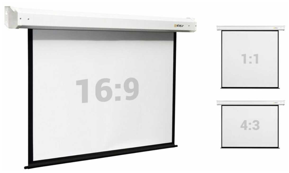 - + Вполне обычный моторизированный экран. Работает четко. Полотно ровное.