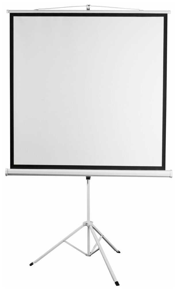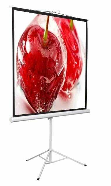 Легко собирается. Удобен в перевозке. Полотно натянуто ровно. При проекции искажений не даёт. Штатив устойчив.