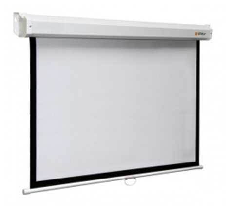 Необычная форма корпуса, хороший коэфицен отражения 0,9. Формат 16:9 диагональ 2.5 метра. Механизм сворачивания шустрый, фиксация в определенном положении при опускания экрана четкое. Крепление хоть к стене хоть к потолку.