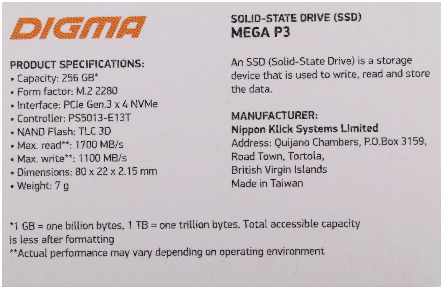 Отзывы о Твердотельный накопитель DIGMA 256 ГБ M.2 DGSM3256GP33T