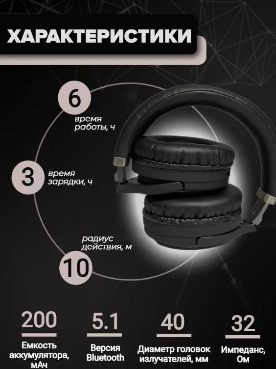 5. Дизайн: Черный цвет и стильный внешний вид делают наушники привлекательными. Они подходят под любой стиль и одежду.