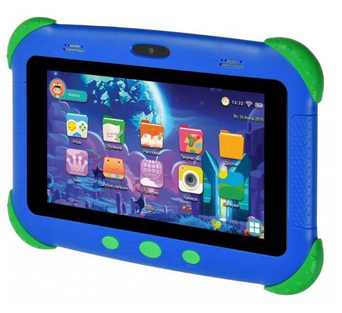 - Вес 320 г и скруглённые края делают планшет удобным для детских рук.