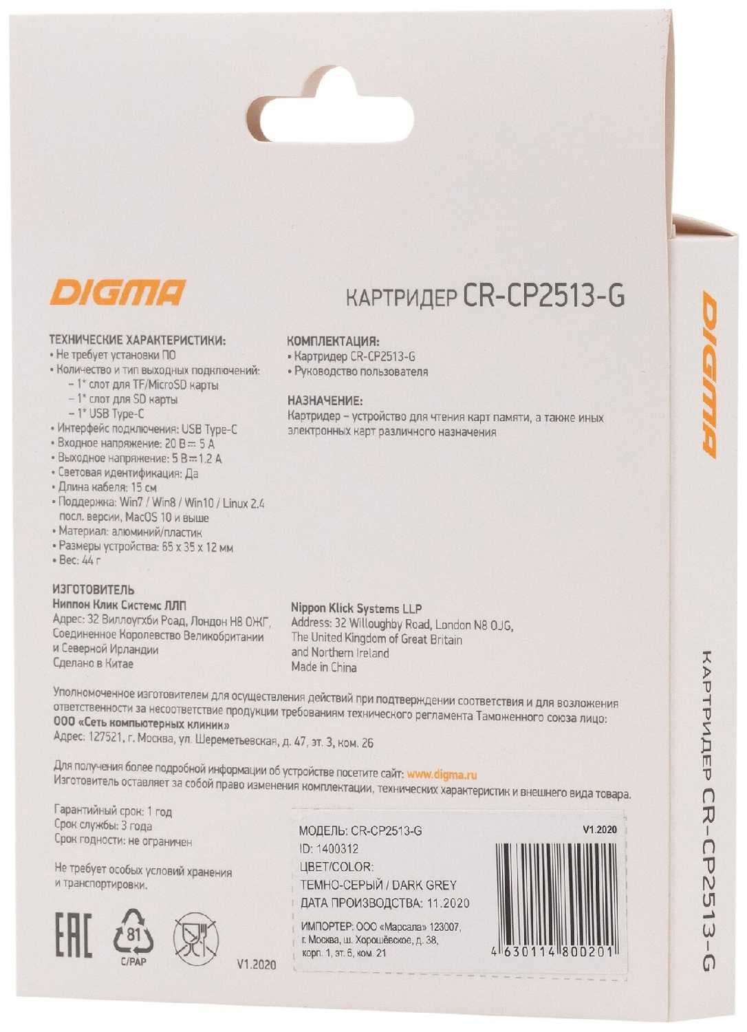 - + Картридер миниатюрный, подключение type-c, поддерживает 3 вида карт памяти.