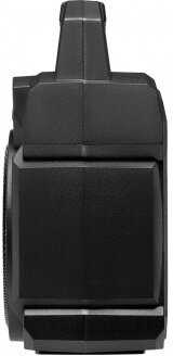 Смотрится прикольно особенно с подсветкой. Удобная ручка для переноски. Есть радио, прием хороший вполне. Работает 45 часов, часто использую когда есть возможность подключение через кабель.