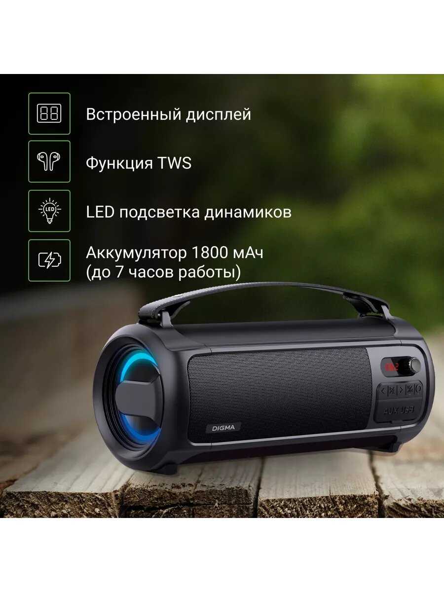 Мощность в 25 Вт обеспечивает громкость, достаточную для помещений до 25 м² или открытых пространств. Аккумулятор ёмкостью 1500 мАч (по данным из отзывов) выдаёт 5–8 часов работы в зависимости от громкости: на максимуме — до 5 часов, на средней — до 8. Зарядка занимает 2–3 часа, причём устройство может использоваться во время подключения к сети. Технология Bluetooth 5.0 обеспечивает стабильное соединение в радиусе 10 метров без помех. Отмечается, что версия платы 2019 года, что может влиять на скорость подключения по сравнению с современными аналогами. При этом колонка не поддерживает влагозащиту, что ограничивает использование в экстремальных условиях.