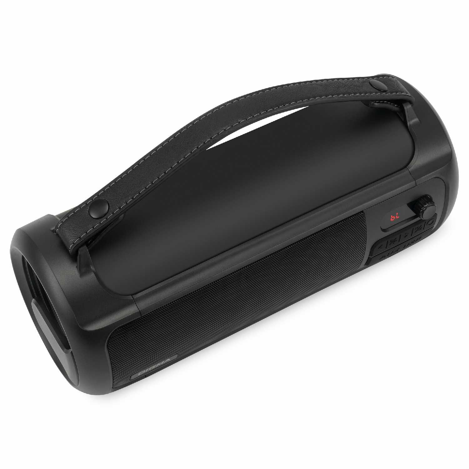 Модель позиционируется как мобильная: вес около 2 кг, наличие ручки-ремня и компактные габариты позволяют брать её в поездки или на пикники. Матовое покрытие корпуса практично, но собирает отпечатки пальцев. Дизайн оценивается как стильный и минималистичный: некоторые пользователи отмечают LED-подсветку по бокам динамиков, которая, однако, быстро «приедается». Разъёмы спрятаны за резиновой заглушкой, что защищает их от пыли. Отдельно хвалят информативный дисплей, отображающий частоту радиостанций, хотя его функциональность ограничена базовыми данными. Для части аудитории недостатком стал крупный размер — колонка оказалась больше ожидаемого.
