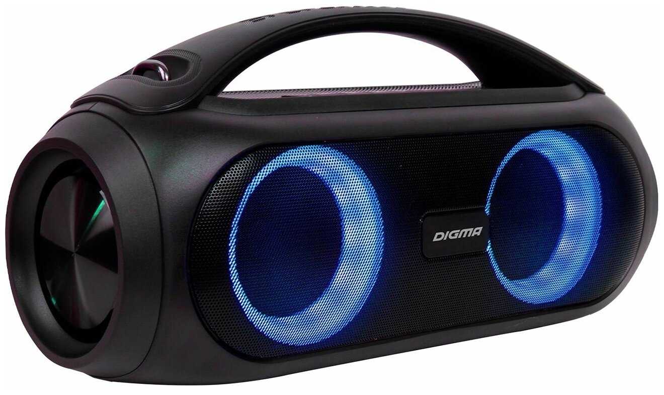 - + Отличная колонка за свои деньги,все работает,читает все форматы,соединение с телевизором и с телефоном быстрое,радио ловит даже без шнура аукс,к покупке рекомендую,из того что было это изделие самое лучшее по соотношению цена-качество!батарею держит с утра до вечера,вполне хватает при громкости больше половины,до этого была Jbl 3,тоже хорошая но со временем сдох аккумулятор,по громкости Digma будет посильней!