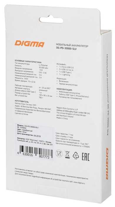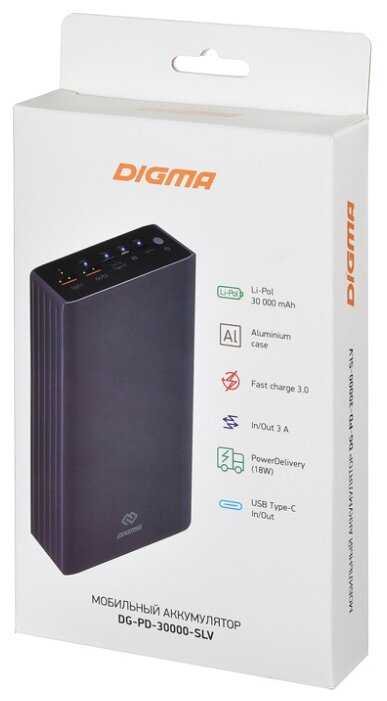 - + Power Bank Digma Power Delivery DG-PD-30000-SLV оказался надежным и мощным устройством. Емкость на 30000 мАч позволяет заряжать мои устройства многократно. Удобен в использовании благодаря разъему Power Delivery, который дает быструю зарядку. Компактный размер и стильный дизайн делают его отличным спутником в поездках и на прогулках. Рекомендую как надежное и эффективное решение для зарядки гаджетов в любых условиях.