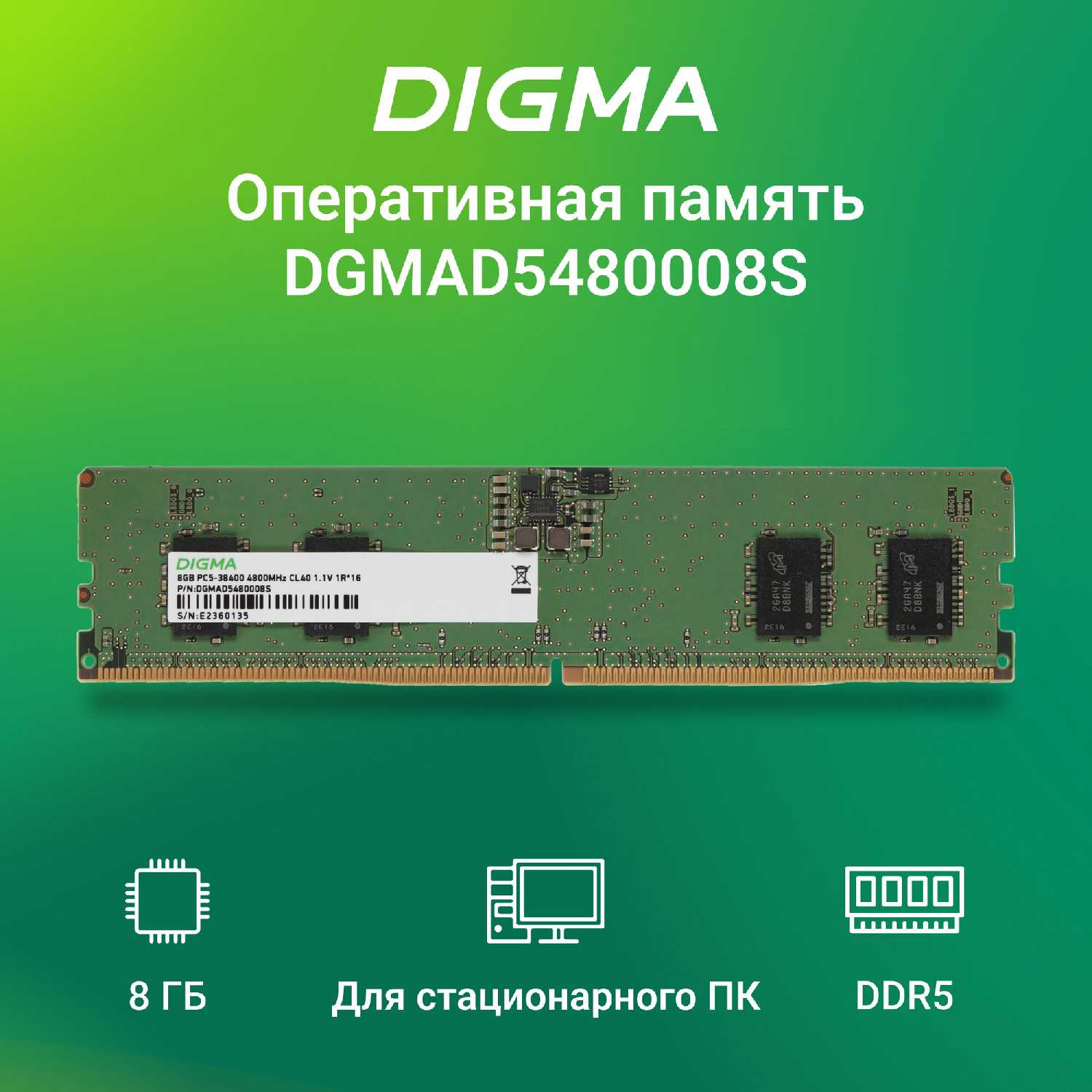 Отзывы о Оперативная память Digma DGMAD5480008S [DDR5 8ГБ 4800МГц].