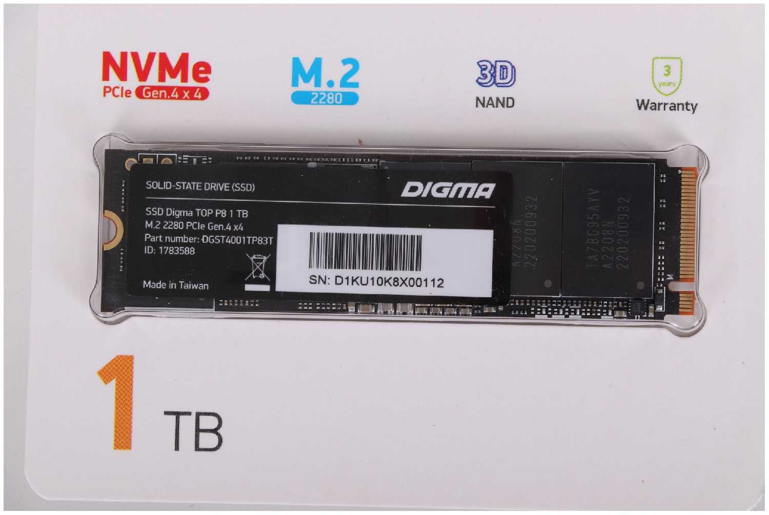 Отличный накопитель, работа на максимальных скоростях на уровне Топовых M2, все тесты проходит как заявлено, в реально работе так же скорость космос. Нагрев минимальный, под радиаторами материнки вообще не ощутим. Рекомендую тем кто не хочет переплачивать за бренд. Тот случай когда DIGMA звучит в положительном ключе и не вызывает вопросов.