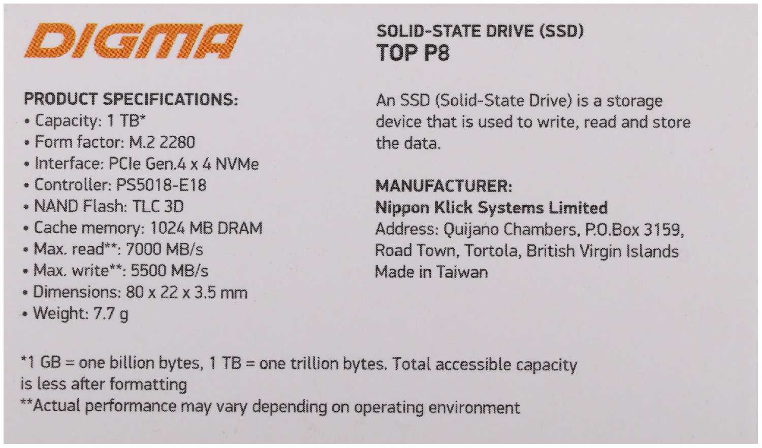 - Топовый контроллер Phison E18, память Micron TLC 3D, без переплаты за бренд.