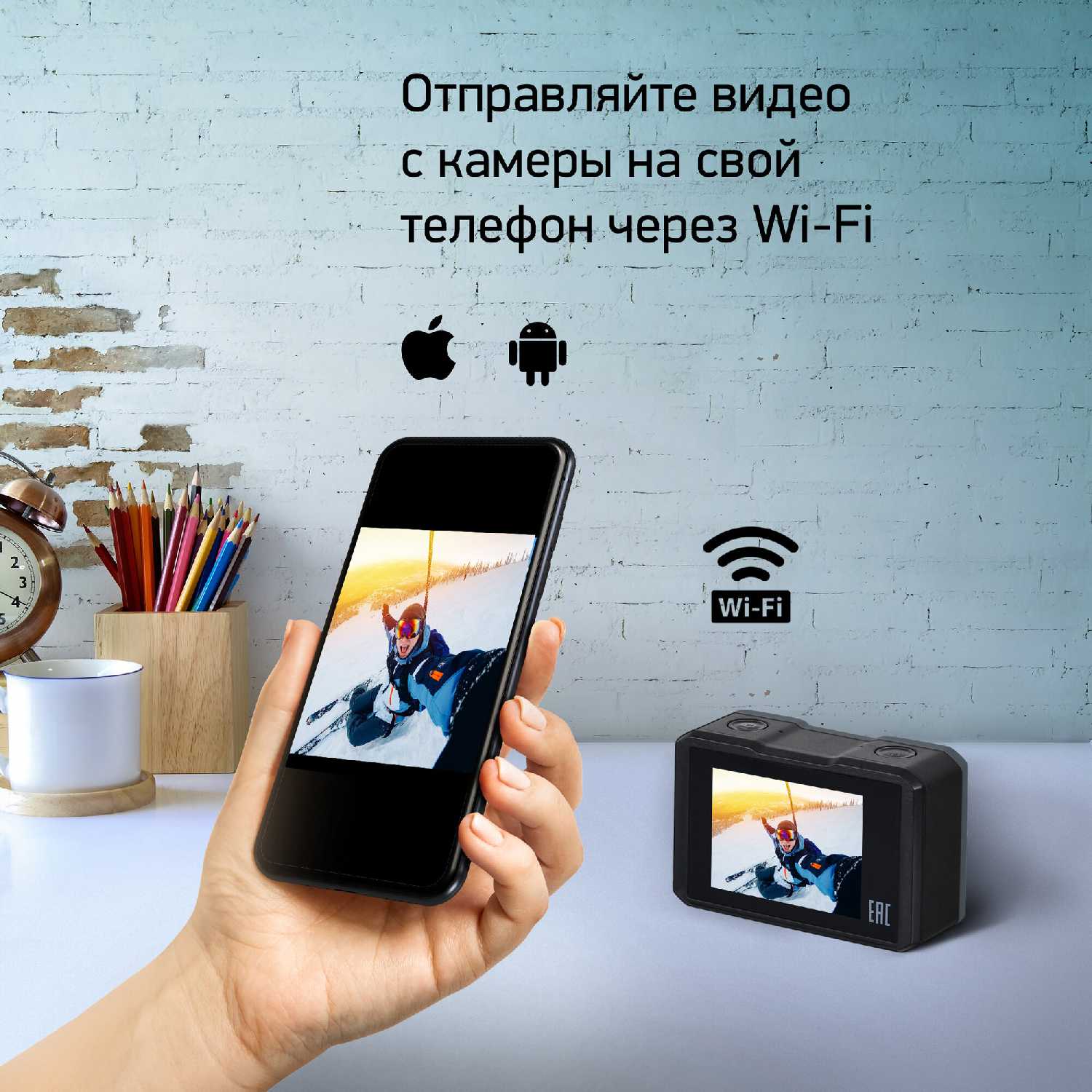 Встроенный Wi-Fi стабильно соединяется с приложением на Android/iOS, позволяя настраивать параметры, просматривать и выгружать материалы. Управление с телефона удобнее встроенного интерфейса, где все функции распределены между двумя кнопками, но для оперативной съемки физические кнопки надежнее. -