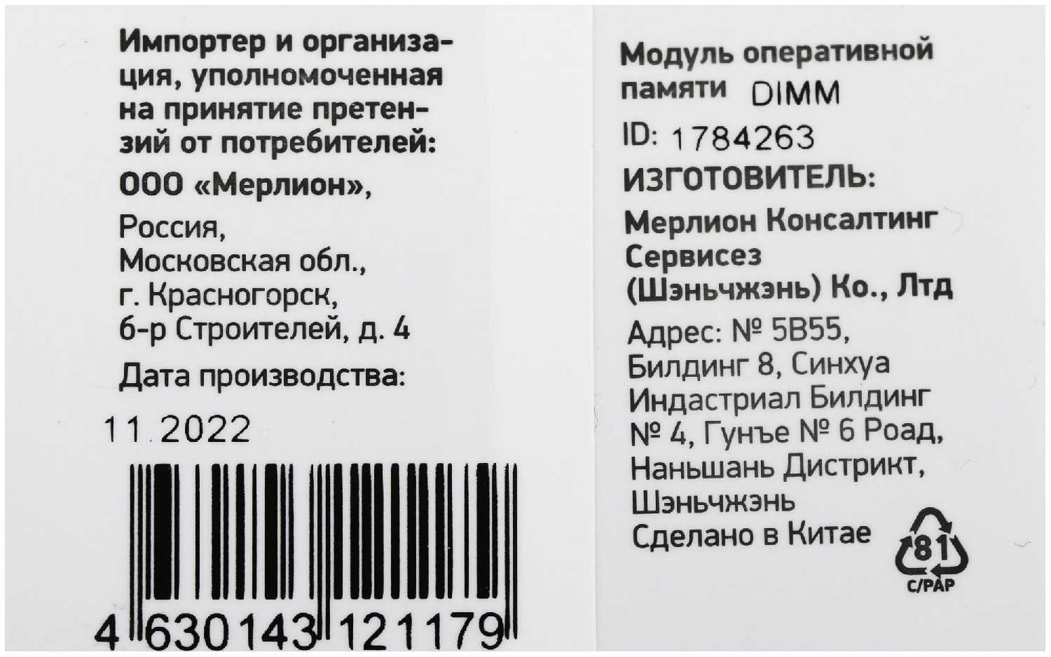 Гарантия покрывает дефекты чипов, пайки и электрические повреждения при штатной эксплуатации. Пользователи отмечают лояльность сервисных центров — замену производят даже для планок с повреждённой упаковкой при сохранении серийного номера. Это делает память выгодной для инфраструктурных проектов (школы, госучреждения), где срок службы ПК превышает 5 лет.