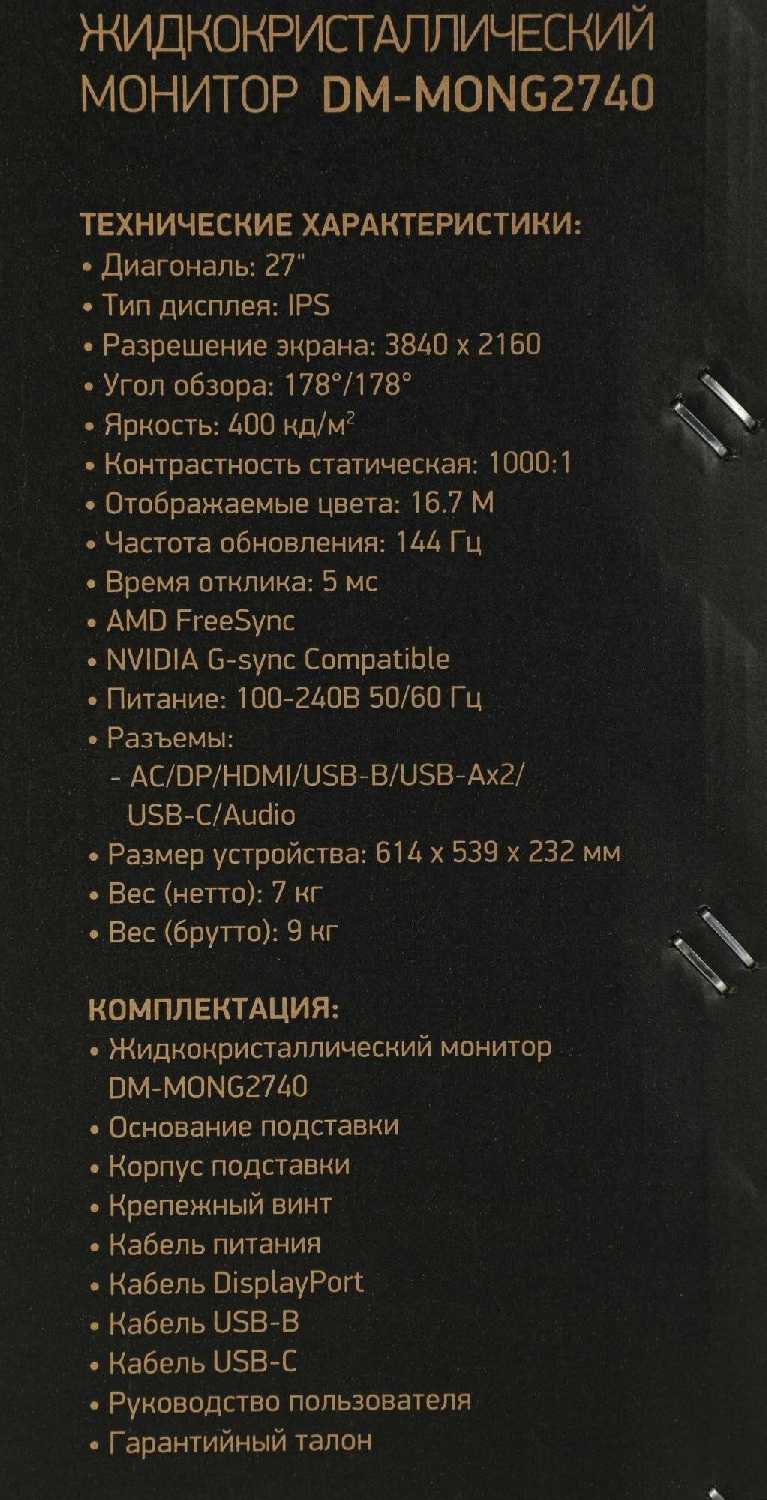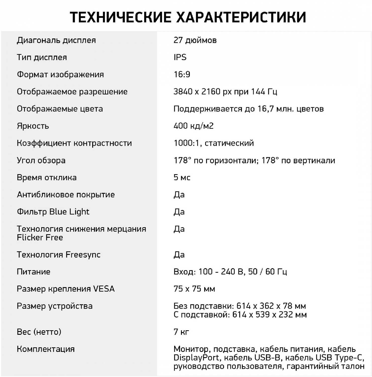 - + 144Гц и 4К. Есть power delivery. Сочная картинка. Отличная яркость. Регулируемая ножка.