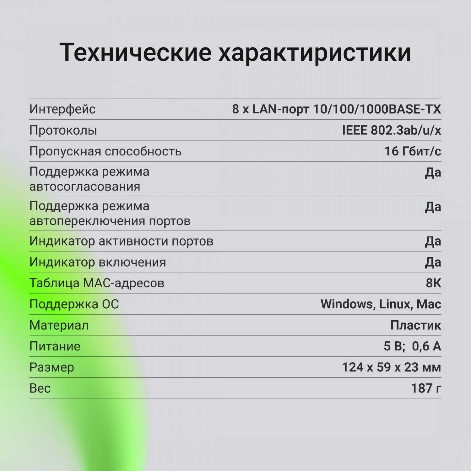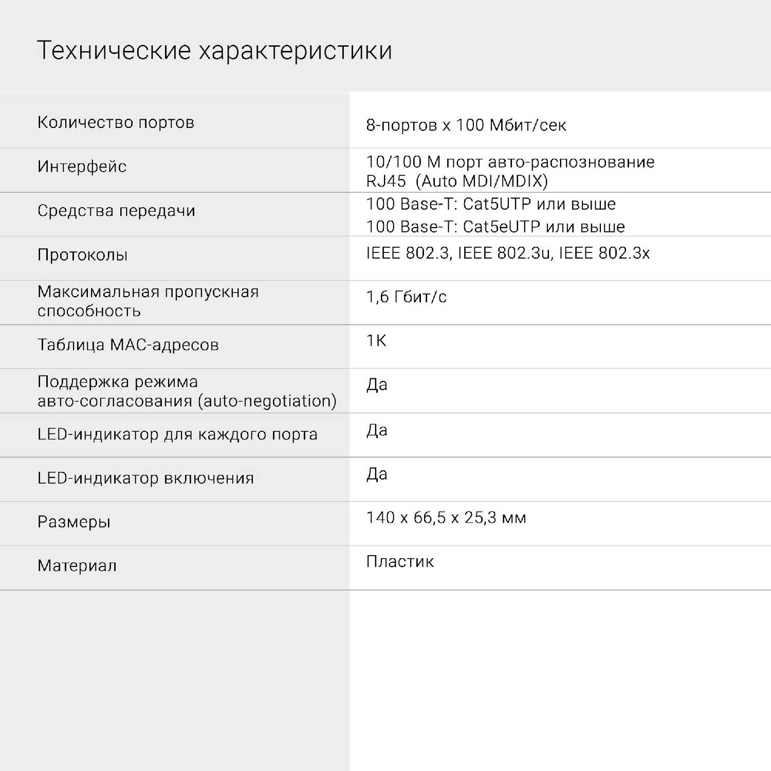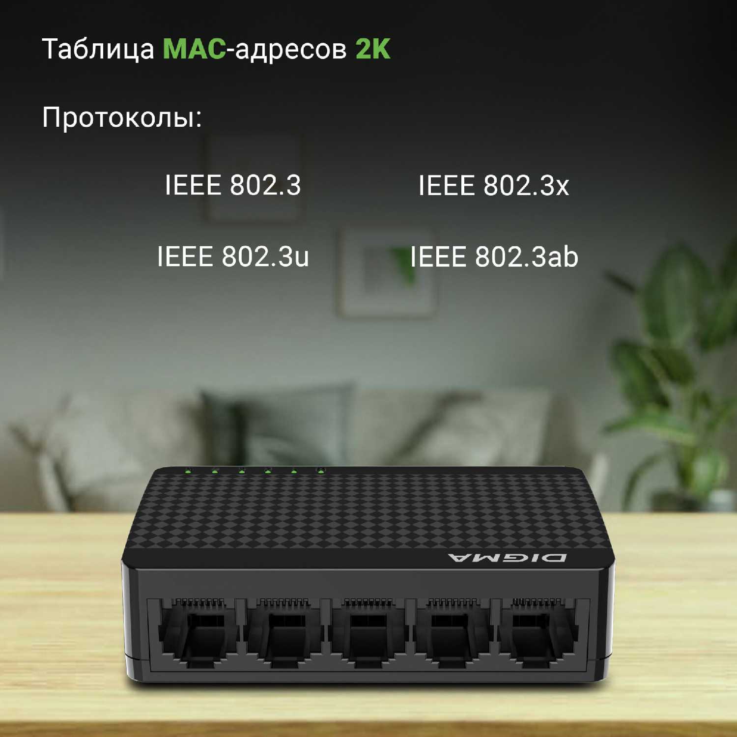 - Устройство работает только в режиме неуправляемого коммутатора, без поддержки VLAN, QoS или мониторинга трафика через веб-интерфейс.