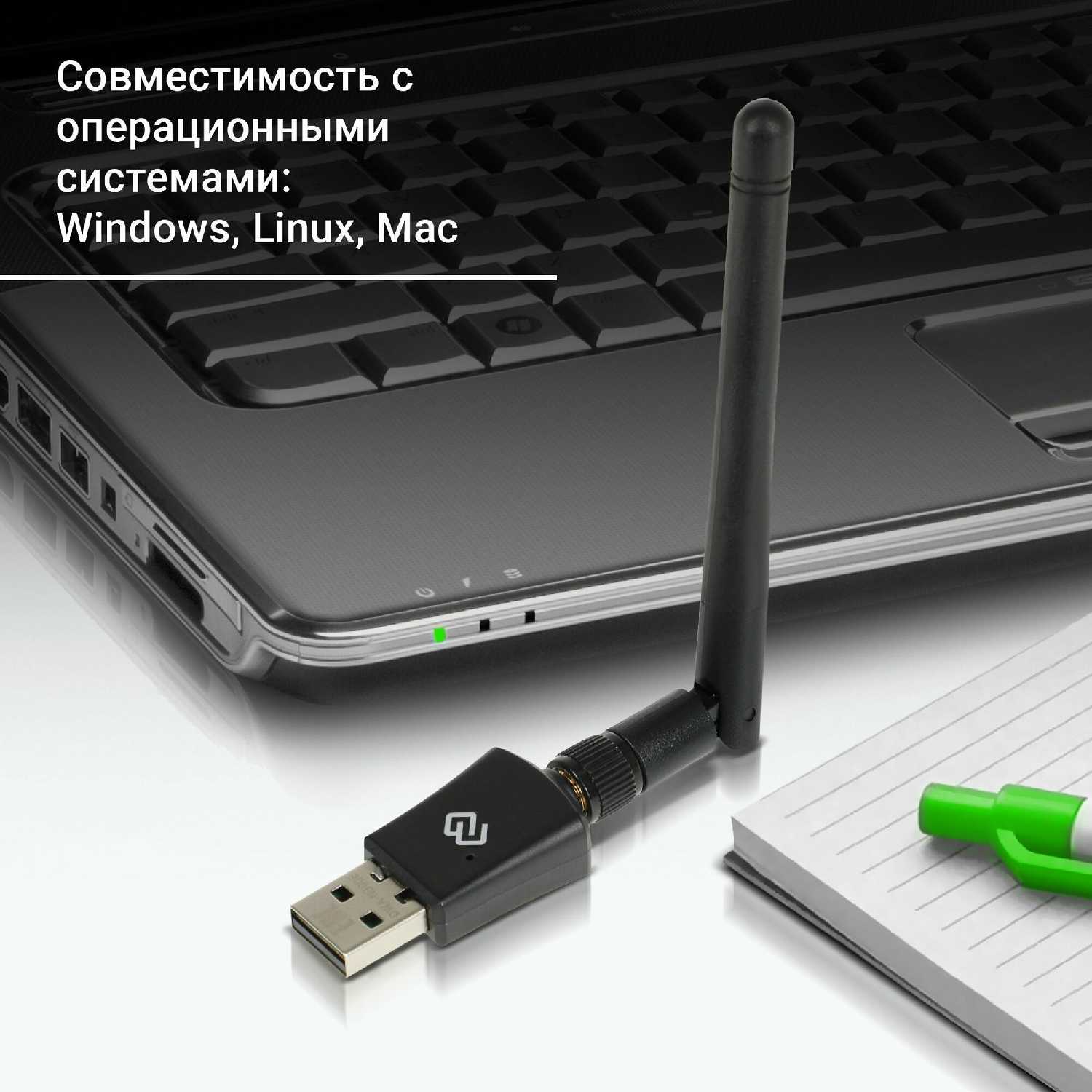 - Небольшие габариты адаптера позволяют использовать его как со стационарными ПК, так и с ноутбуками, не создавая помех при переноске или работе.