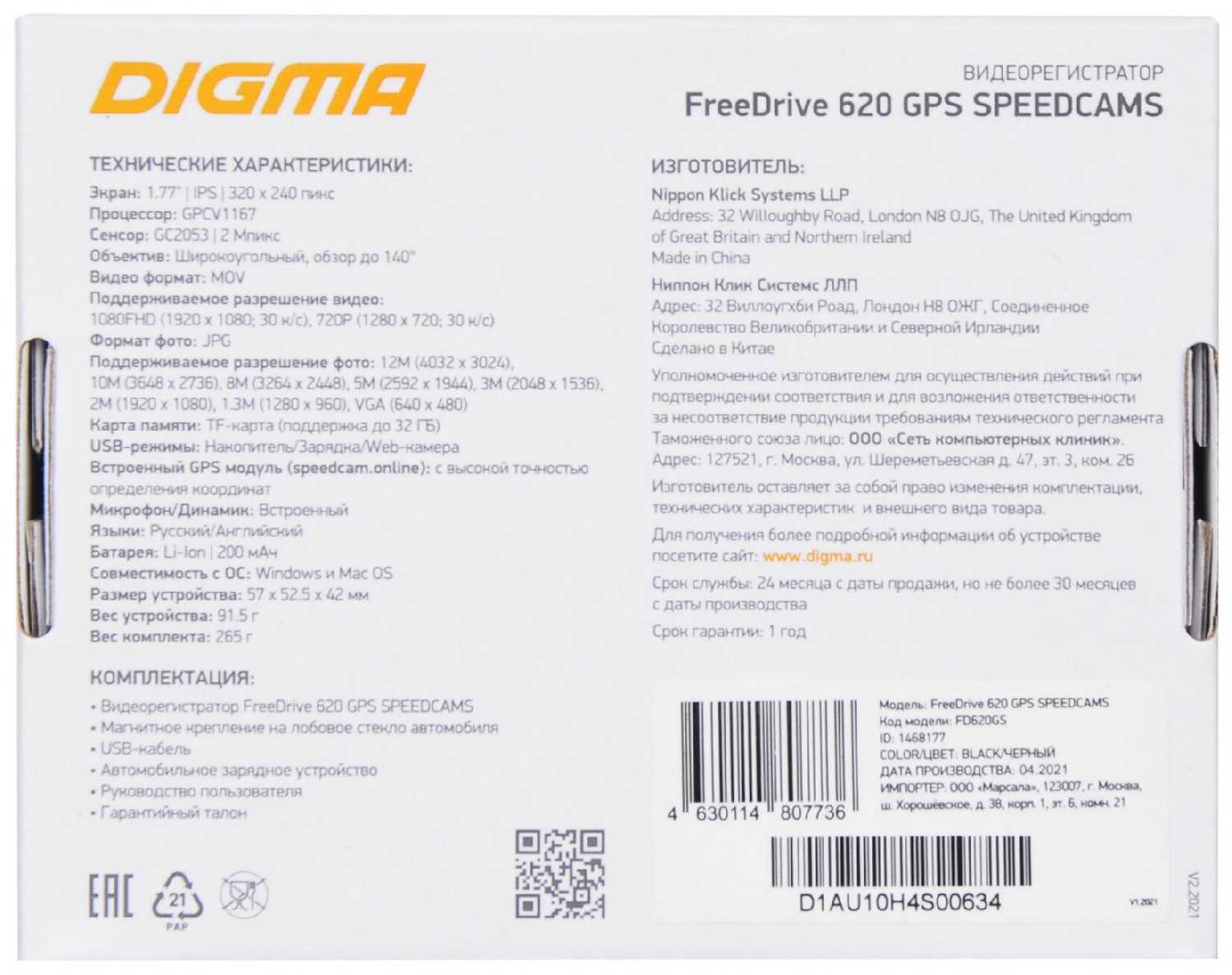 Характеристи Digma FreeDrive 620