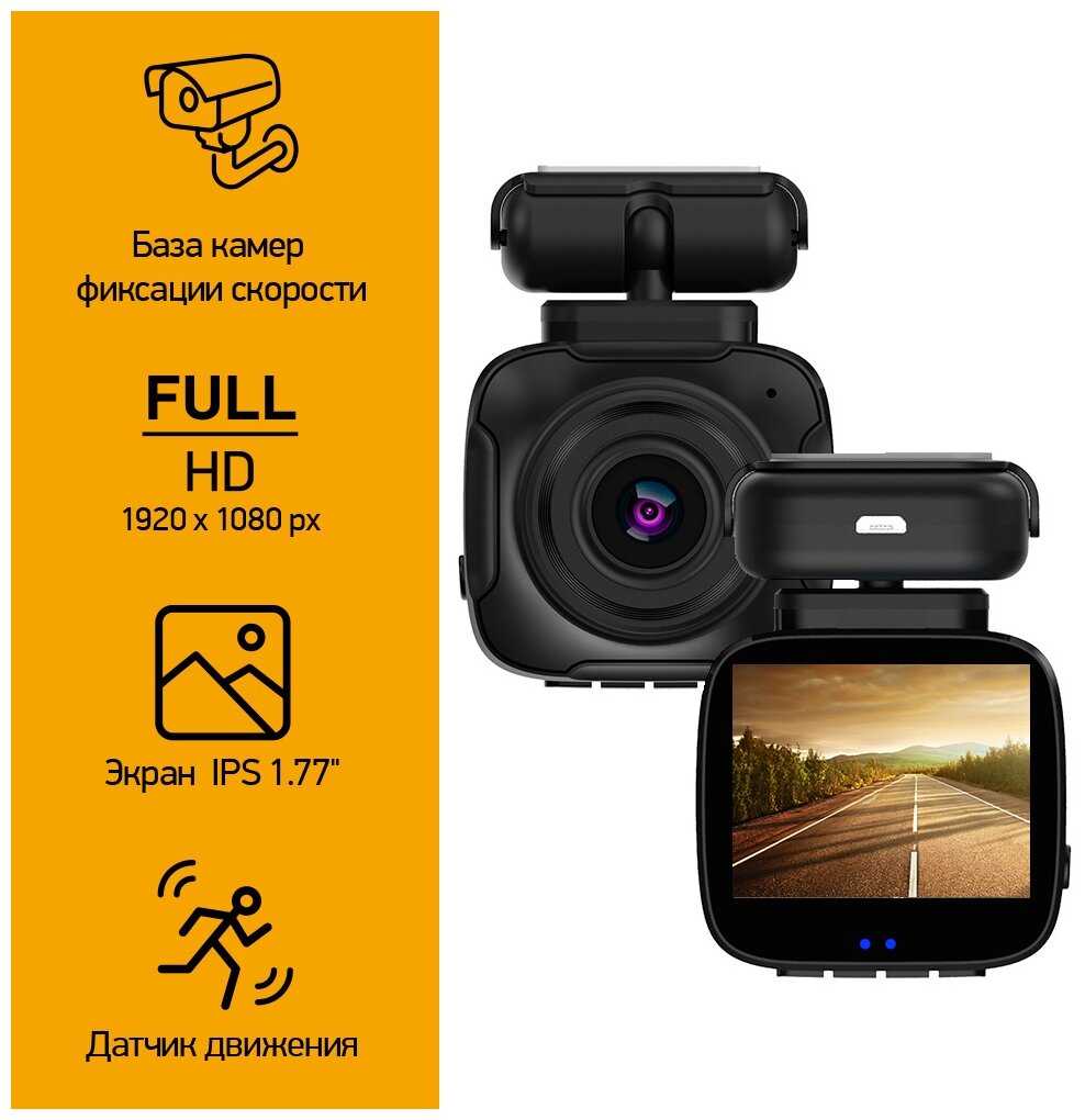 - + Разрешение 1920 х 1080, дисплей, автоматическое включение, датчик удара, база камер Speedcam