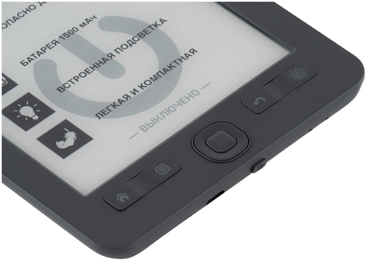 - - Нет чехла в комплекте (взял старый). Кнопки потрескивают, сборка так себе. Пластик выглядит дёшево. Подсветка не регулируется. Если выключить на чтении книги, то после включения требуется зайти в недавно прочитанные. У такой модели часто отлетает разъём зарядки. 4гб встроенной, sd обязательна.