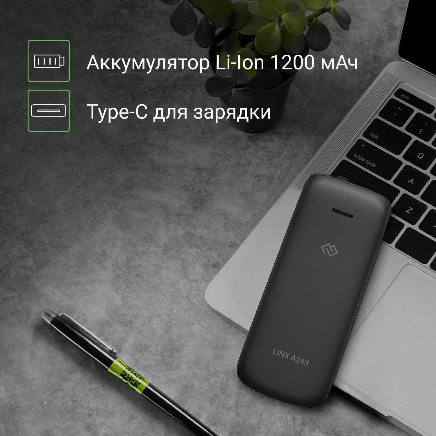 Аккумулятор ёмкостью 1200 мА·ч обеспечивает впечатляющую продолжительность работы: при умеренном использовании (20-30 минут звонков в день) заряда хватает на 3-4 суток, а в режиме "только звонки" — до недели. Зарядка через современный разъём Type-C занимает около 2 часов. При этом обнаружены проблемы с программной индикацией уровня заряда — после отключения от сети показатель может резко упасть с 100% до 85-90%, хотя реальная ёмкость соответствует заявленной. При активном использовании игр или радио батарея садится за 6-8 часов. Интересный нюанс — при 20% остатка телефон может работать ещё несколько часов, что затрудняет прогнозирование.
