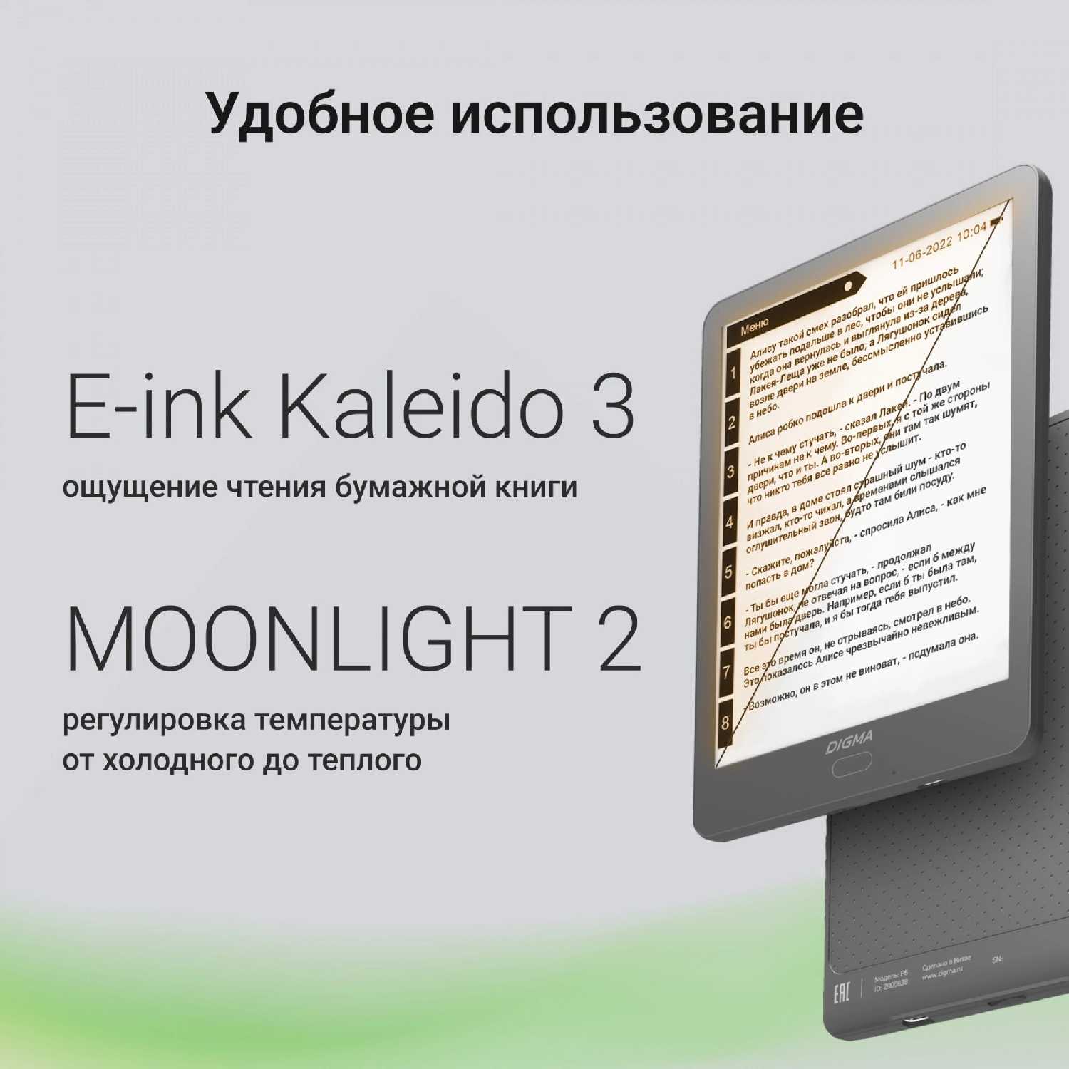 - Экран имитирует бумагу, глаза не устают при длительном чтении.